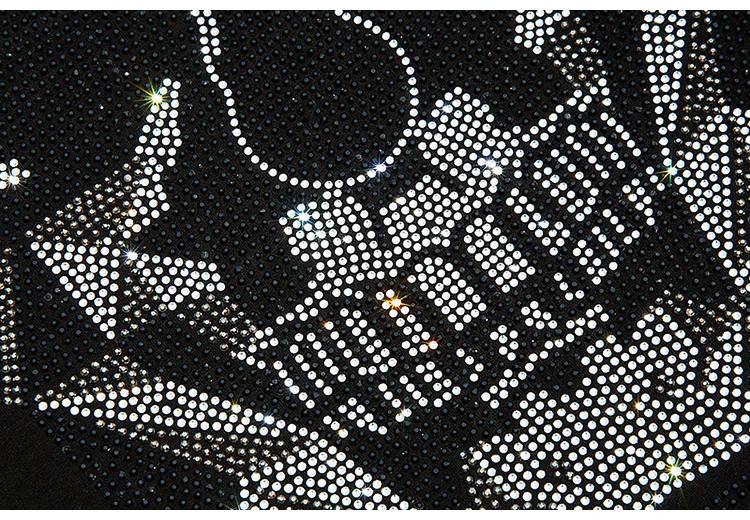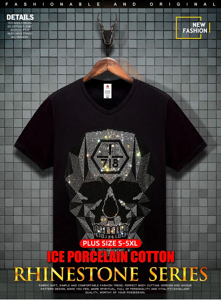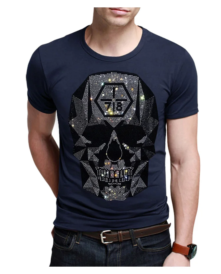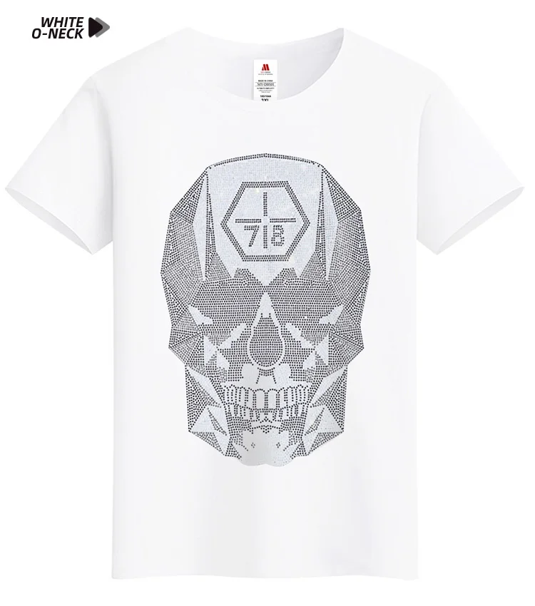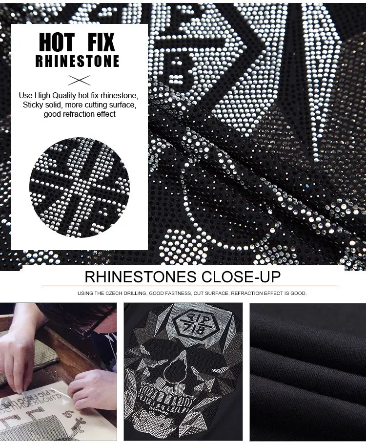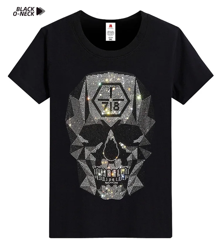 2024 Summer Men's Design Black Skull Rhinestones T shirts Man Slim Fit Elastic Cotton Diamond Print Tees Streetwear Cool Tops |