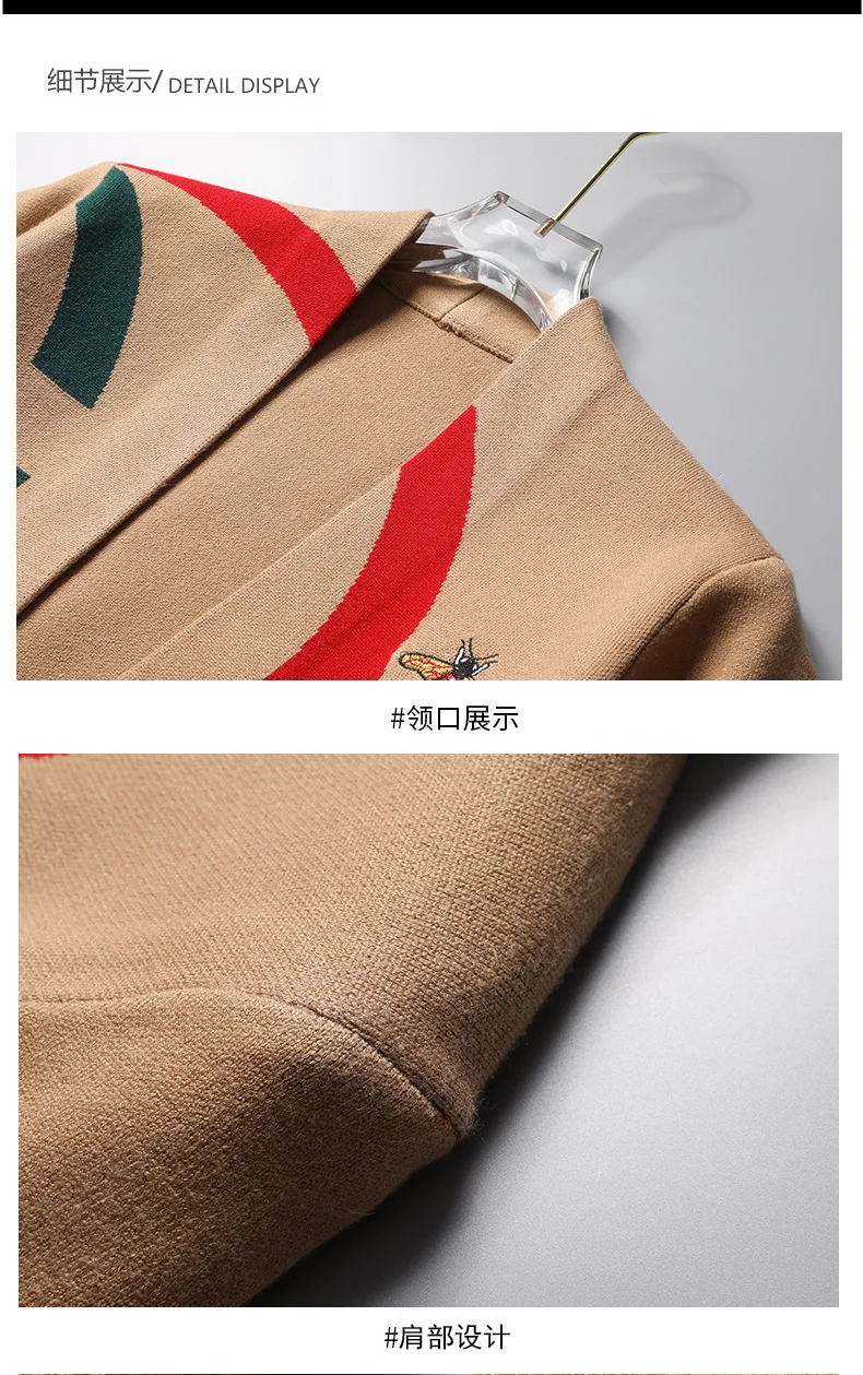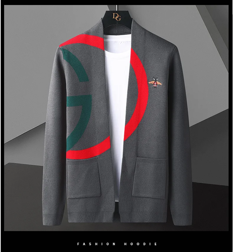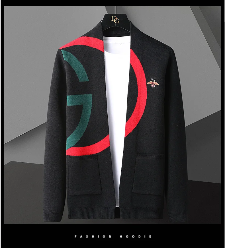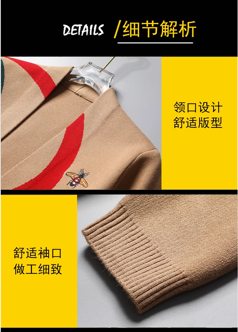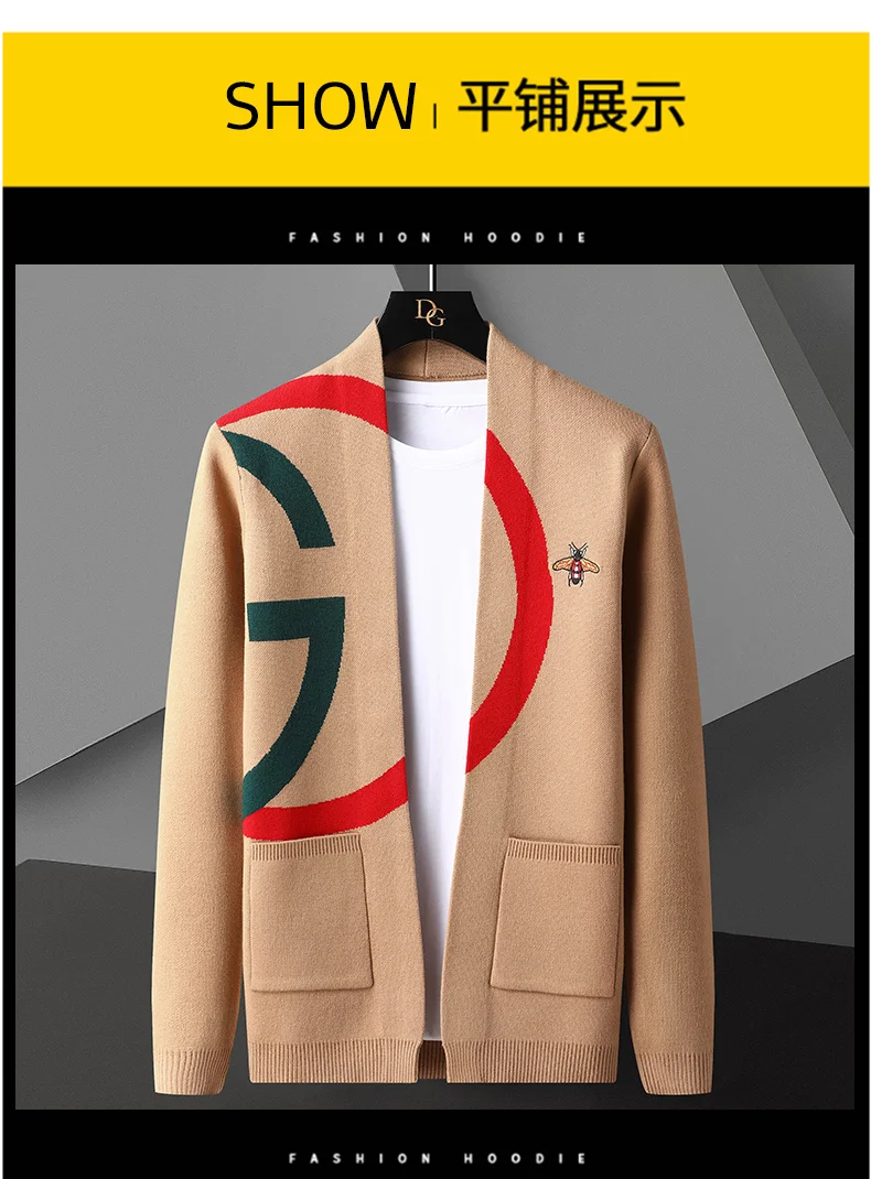 High end Brand Little Bee Embroidery Knitted Cardigan Men's Autumn and Winter New Fashion Personality Casual Sweater Coat Men